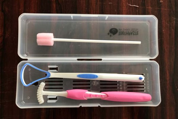 口腔ケアセットのケースと口腔ケアブラシは100均で見つけました。