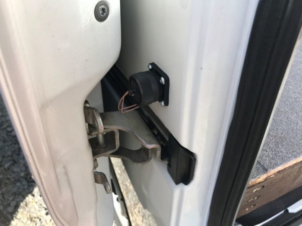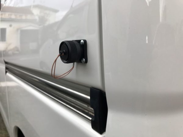 後部のドアはスライド式なので、外部電源のケーブルを接続したままでドアを開いてもぶつからない場所を選びました。