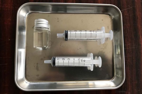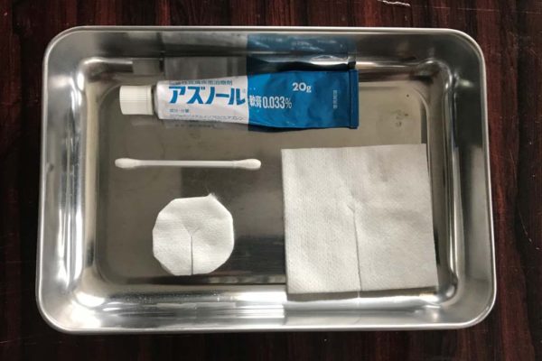 7.5cm×7.5cmと5cm×5cmのガーゼを使用し、ただれが見られた場合は軟膏を塗布するようにしています。