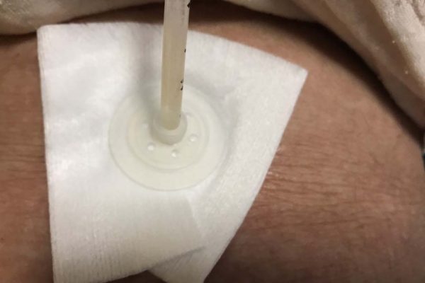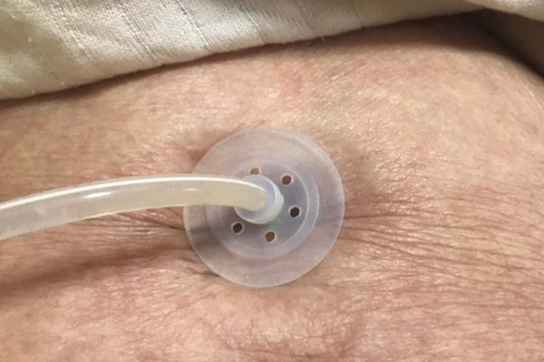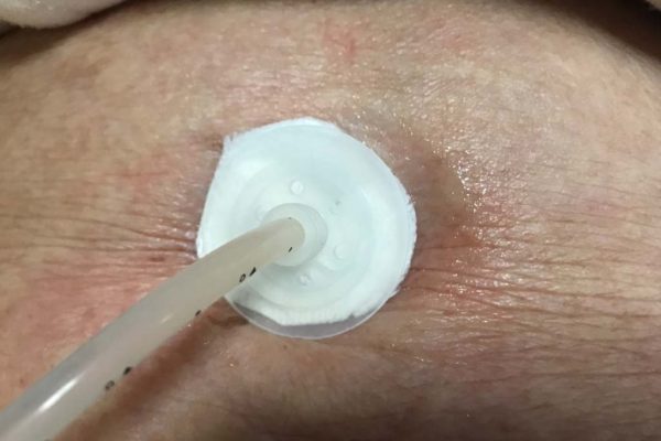 PEGのバルーンが胃の収縮などで吸い込まれると、ストッパーがかなり強い力で肌に埋まります。
