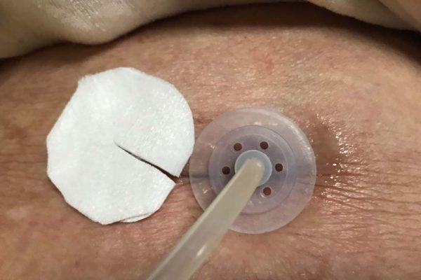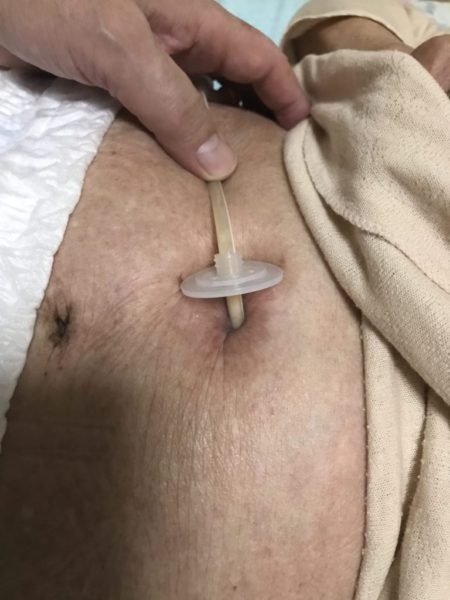 毎朝、最初のオムツ交換時に瘻孔のケアをします。