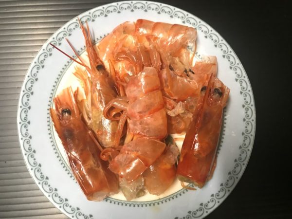 今日はお寿司のネタにしたエビの頭と殻で出汁を取った味噌汁にしました。