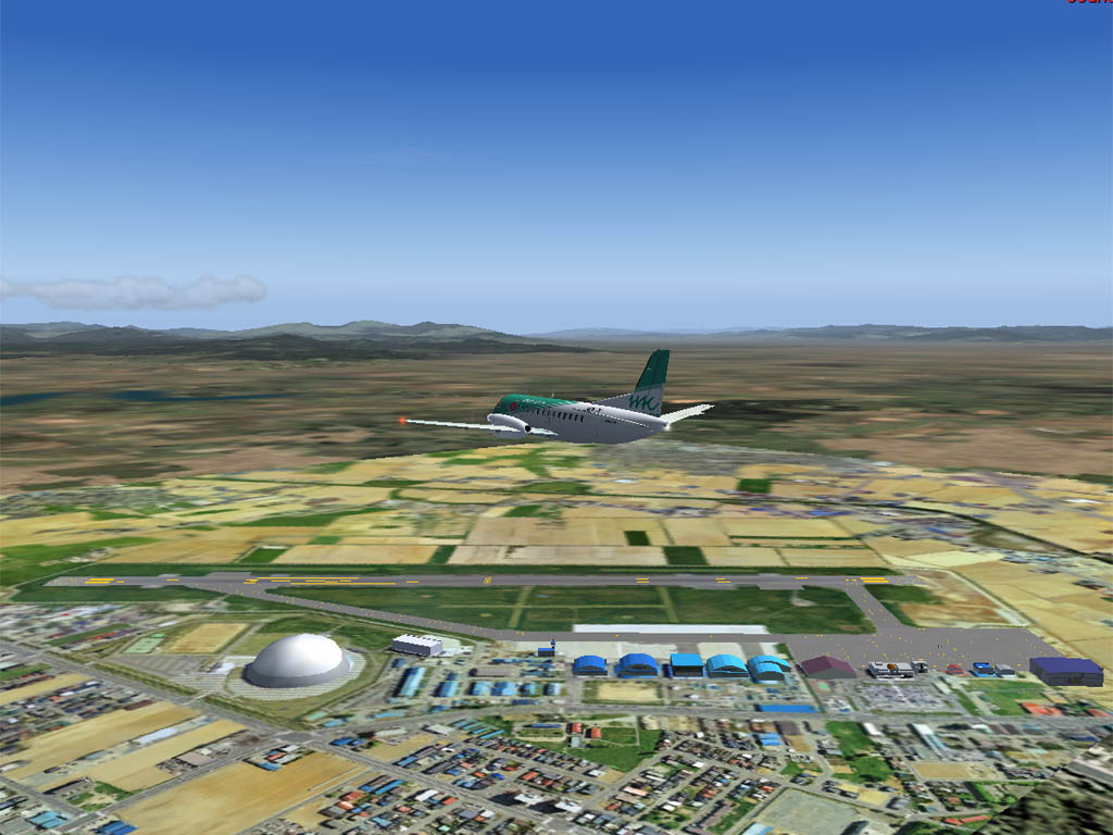 背景の函館市外はフォトテクノ社から販売されたシーナリーで、この組み合わせで、まるで本当に函館の上空を飛んでる錯角に陥る。