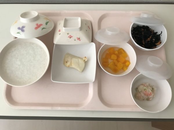再度の検査に備えて前病院ではあえて重湯にしてもらっていたのですが、どうせ下剤を飲むので食事は出しますと夕食が出ました。